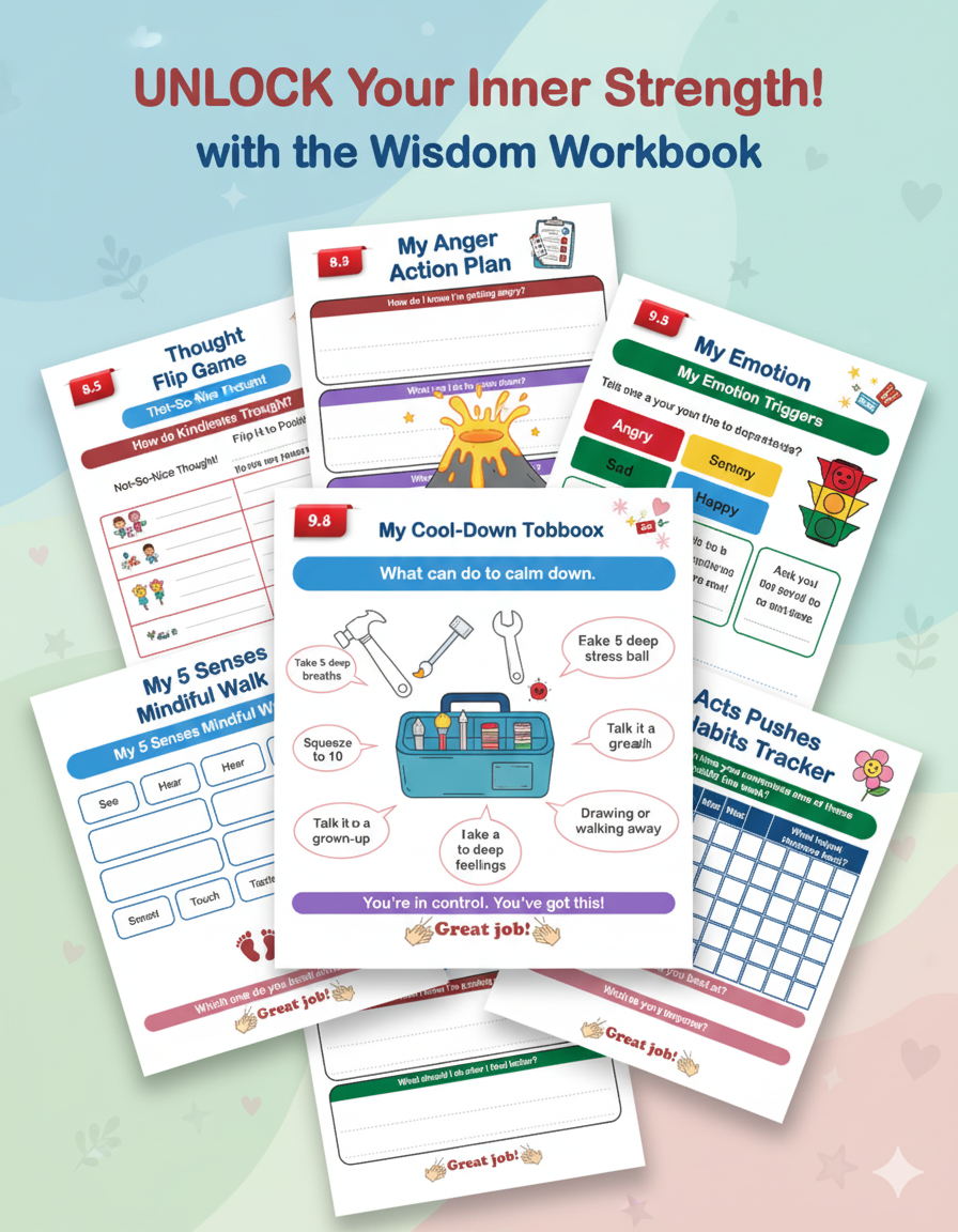 An easy-to-use workbook for kids ages 6–10, packed with 45+ activities that build emotional intelligence and self-regulation. Kids learn to identify feelings, calm themselves, handle stress, and grow emotionally strong.